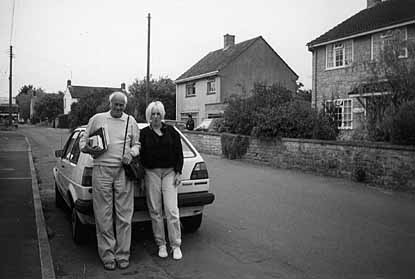Peter Caddy (L) and the author outside her house in Somerset, early 1990s